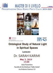 از ساعت 15 روز جمعه 13 اردیبهشت ماه 1398؛ دکتر سارا کریمی؛ در سالن Fiarentino دانشکده معماری Valle Giulia شهر رم، به نشانی Via Antonio Gramsci, 53 نتایج تحقیقات خود در حوزه هستی Continue reading →